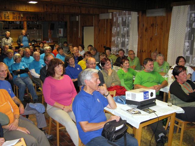 Hodinka při zajímavých zprávách čile uběhla a lahodné řízky v místním hotelu, kam jsme chutě zaběhli, snesly ta nejpřísnější měřítka. Po večeři pokračovalo školení, pak jsme se ponořili do historie právě probíhající akce: členové audiovizuálního studia BRAJA vytvořili dokument, ve kterém nás provedli těmi semináři, ze kterých v minulosti vznikly fotky a šoty. Seřadili je systematicky, vkusně a nápaditě, doprovodili svižným, informativním a vtipným komentářem, což jsme ocenili, a jistě ocení i historikové, kteří se jednou budou činností KČT v naší době zabývat. 🙂 Jistě jim, stejně jako teď nám, přijde vhod i prezentace věnovaná přípravě a vzniku kalendáře turistických akcí KČT VYSOČINA.