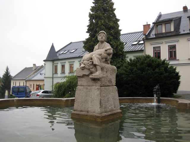 Na kašně vidíme kopii vytvořenou Vincencem Makovským, Štursův originál je ozdobou Horáckého muzea, které sídlí v budově bývalé radnice.