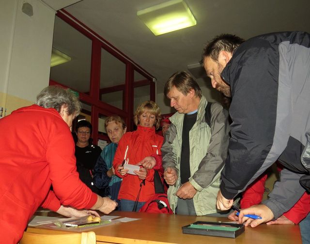 Z Jihlavy jsme odjížděli v 7:30, po registraci na startu v 5. Základní škole Palachova ve Žďáru nad Sázavou a vyzvednutí Účastnických listů jsme se vydali na náměstí, kde se turisté po vyslechnutí popisu tras rozdělili na dvě skupiny podle představy o délce trasy a nabídnutého programu.