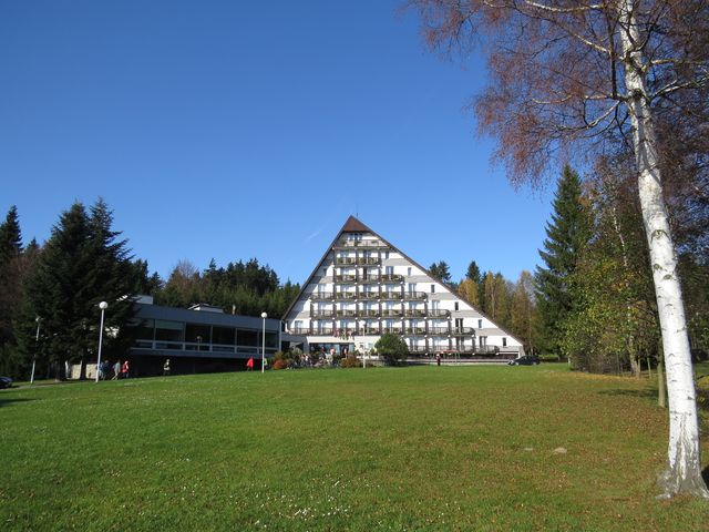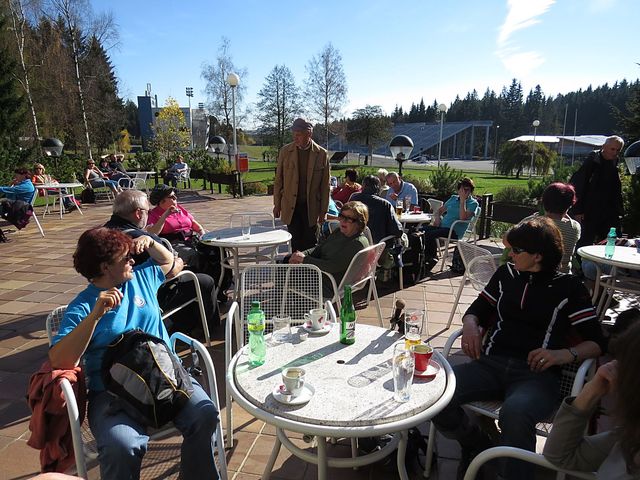 Poté se vydali žlutě značenou trasou do Lhotky, kde se mohli po zdolaných devíti kilometrech osvěžit v restauraci U Hublů, dříve než ve 13:30 odjeli autobusem ke známému hotelu Ski. Zde si prohlédli nově vystavěný areál pro běžecké lyžování a biatlon, v 15:00 je autobus zavezl do Nového Města na Moravě, které bylo i cílem druhé skupiny, jejíž členové si vybrali delší trasu.