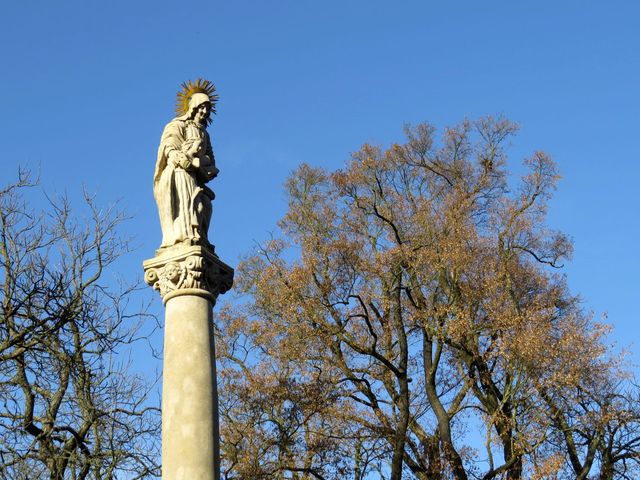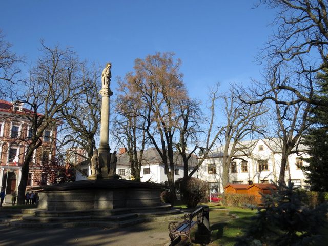 Prohlídku jsme zakončili ve středu parčíku u barokního sloupu sv. Anny s malou P. Marií; sloup byl vybudován v roce 1727 patronce města jako poděkování za ochranu před morem.