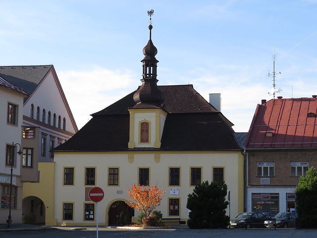 Zmíněná Horácká galerie je naproti, sídlí v budově zámku, který v roce 1589 vystavěli Pernštejnové.