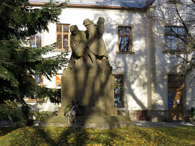 Sousoší legionářů v uniformách bylo vytesáno v roce 1932 podle předlohy dřevořezby Jana Štursy z roku 1918.