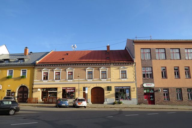 To už jsme zpátky na Vratislavově náměstí, jdeme po opačné straně směrem ke kostelu a zastavujeme se před domem č. 119,