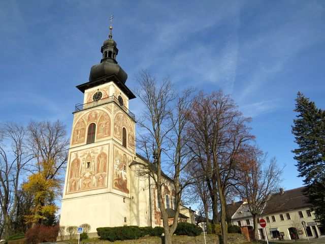 se vzácnou sgrafitovou výzdobou fasády ze dvacátých let minulého století provedenou místním malířem a grafikem Karlem Němcem (1879–1960), žákem Aloise Kalvody a Hanuše Schweigera.