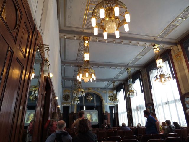 Běžel tu film o pražské secesi, historii a architektuře Obecního domu a jeho umělecké výzdobě – ale znáte to, puzeni neklidem jsme nespočinuli na pohodlných židlích, ale s hlavou plnou ušlechtilých vzorců jsme od vytříbeného vkusu vyběhli do ulic současného města a vrhli se do všednosti…