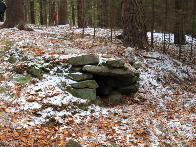 Nadešel čas rozptýlení – Standa Balík pro nás měl překvapení – neotřelý turistický cíl v blízkém okolí. Většina z nás o něm pro jeho nenápadnost pouze slyšela, teď na vlastní oči uvidíme kolomaznou pec u Hojkova. 🙂