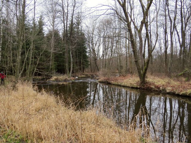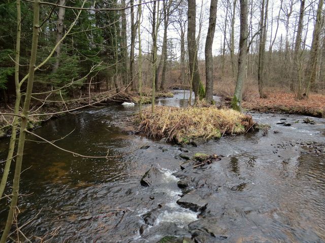 Z Hlinska jsme se vydali k hlavnímu, Filipovskému prameni po zeleně značené stezce, která hned kousek za městem vklouzla do údolí hojně zarostlého vegetací – v této roční době ovšem umožňovaly holé stromy jindy nevídané průhledy a celá lokalita působila dojmem odlehlosti a příslibem nenadálých tajemných náhod.