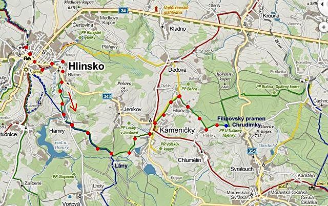 Trasa: Hlinsko – Lány – Kameničky – Filipov – polesí Stará obora – pramen Chrudimky – zpět do Kameniček – autobusem do Hlinska = 18 km