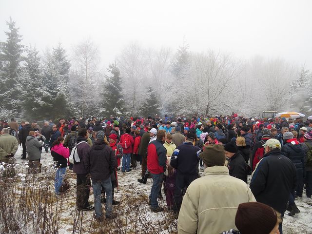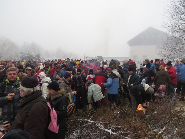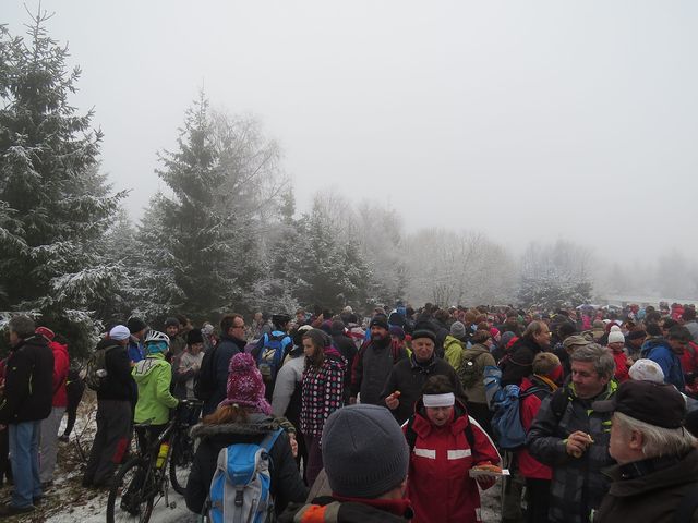 Poslední den roku jakoby se chtěl trochu odlišit od těch předcházejících přívětivých a slunečných – rozpomněl se, že je vlastně zima, kdesi vyštrachal sníh, do kterého se místy připletl déšť, vítr a mlha, a tento hutný koktejl naservíroval ráno pochodníkům. Vím ale jen o jedné dámě, která kvůli klouzavým botám zůstala doma 🙂 – pořadatelé z KČT Telč oznámili, že na vrcholku Javořice se během dne vystřídalo 5 692 lidí!!