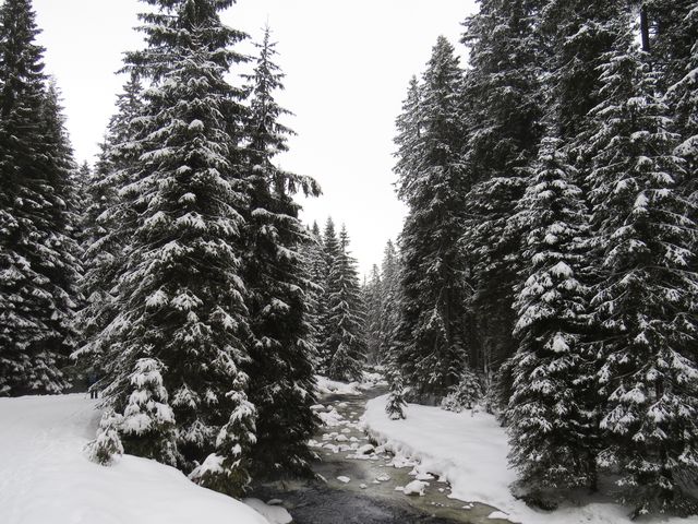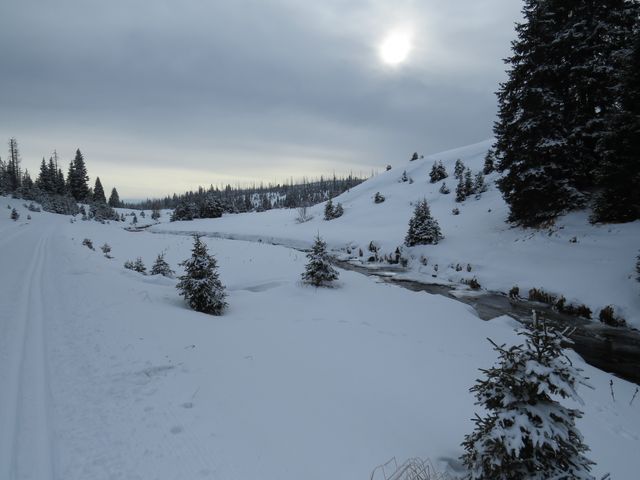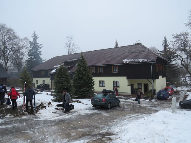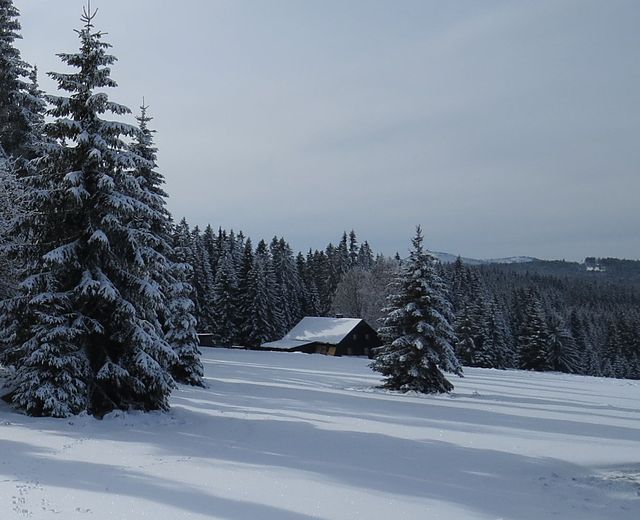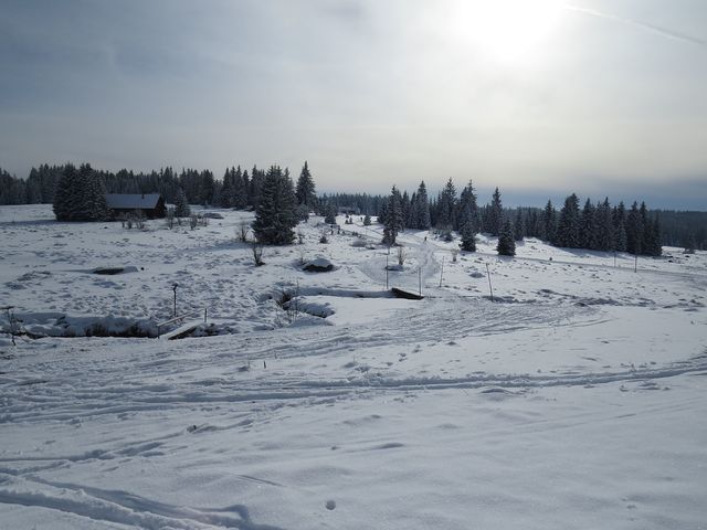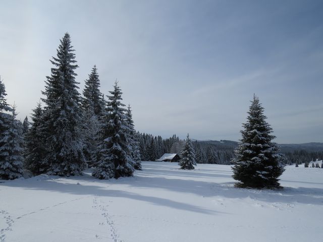 Sobotní ráno 1. února 2014 na Gerlově Huti (sklárna tu bývala od samého počátku 18. století až do roku 1865) přineslo uklidnění – množství dobrého sněhu dávalo naději na hezky strávený den na běžkách. Měli jsme v úmyslu jet přes Polom, Hůrku a jezero Laka známou cestou do Prášil.
