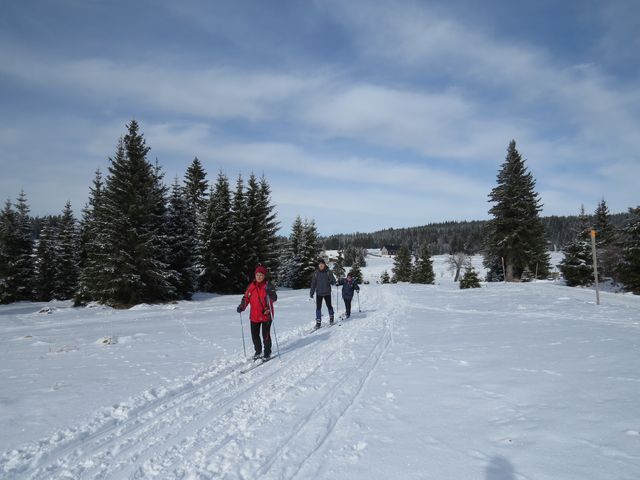 Měla jsem trochu trému, jestli po loňské absenci běžkovací ovládnu lyže či ony mne, ale sportovní nářadí, prostředí i přátelé byli vlídní, tak jsem nepociťovala nijakou újmu. Rozhledy ostatně připustily pouze světlé myšlenky, podívejte se aspoň na fotkách na tu krásu – v dálce jsou Roklany, kterým se tu říkávalo Prsa Matky Boží.