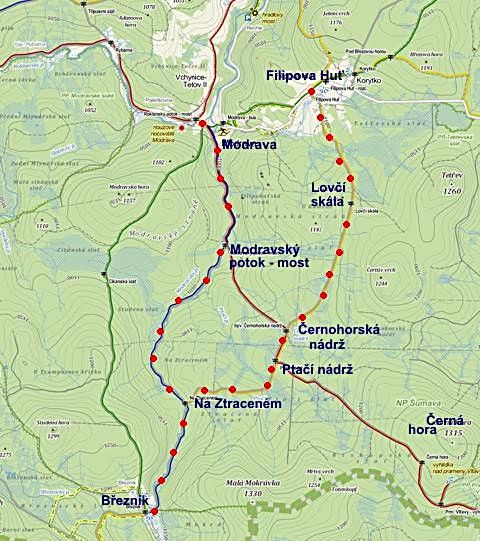 přes Ptačí nádrž na Ztracený a odtud na můj milovaný Březník do výšky 1126 metrů.