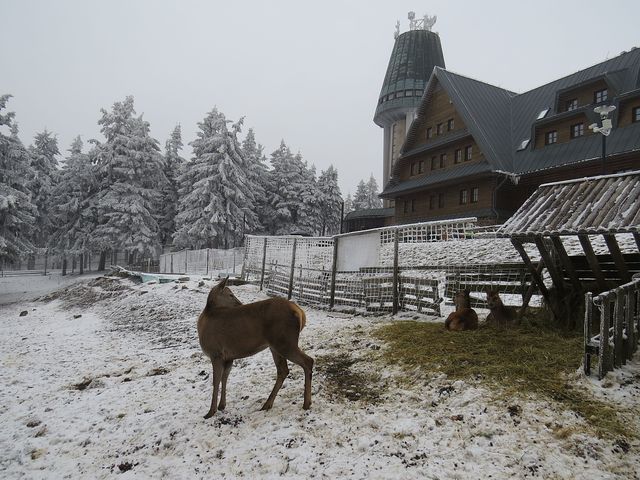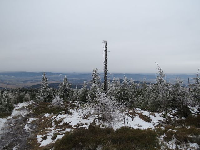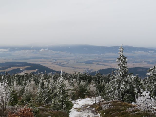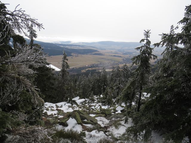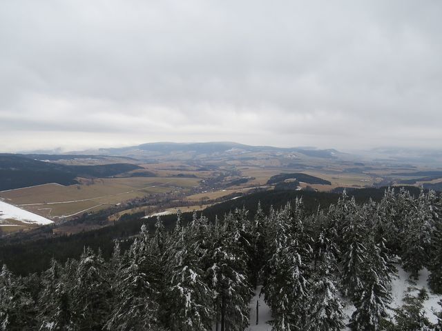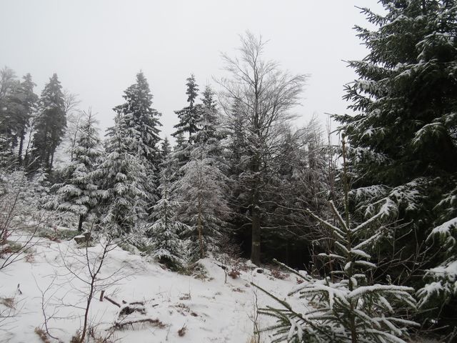 Sotva jsme sestoupili z rozhledny, začal padat mokrý sníh, který se v nižších partiích později proměnil ve vytrvalý déšť.