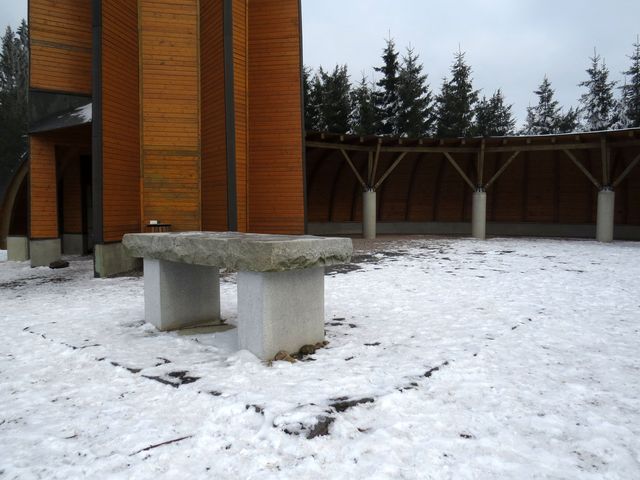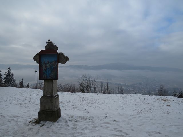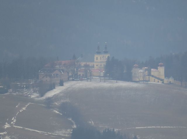 Nabídka pěších tras byla pestrá, přesto jsme si stanovili program podle vlastního výběru a po snídani jsme v pátek 7. února 2014 vyrazili v mlze k nejbližšímu lákavému cíli, poutnímu areálu na 760 metrů vysoké Hoře Matky Boží.