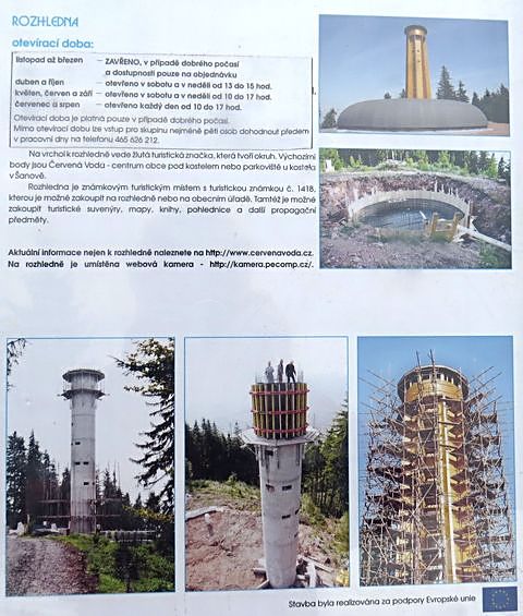 25 metrů vysoká rozhledna s přízemním otevřeným ochozem s oblou střechou, postavená podle projektu architekta Jana Mádlíka, byla otevřena v létě 2007 – zasadila se o to obec Červená Voda, většinu z celkové částky 7,2 milionů Kč zaplatila EU.