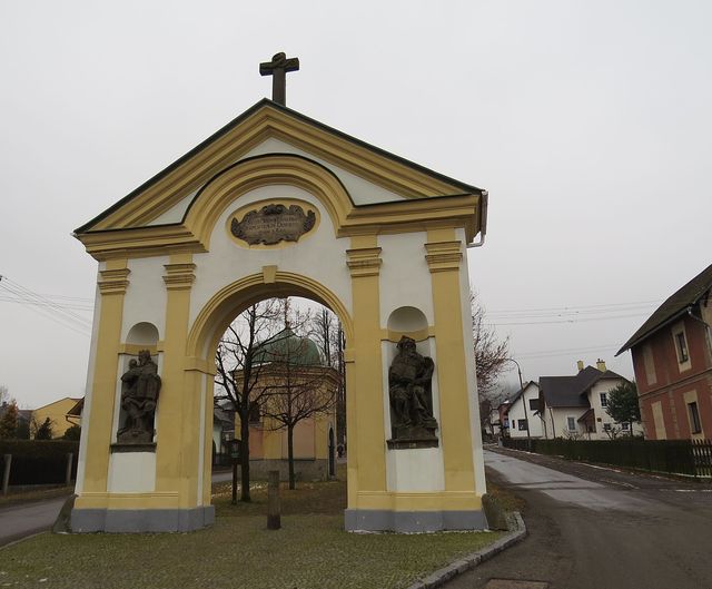 Značená cesta nás dovedla k barokní bráně na začátek králické křížové cesty k poutnímu areálu.