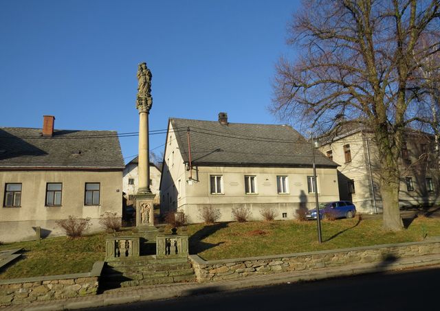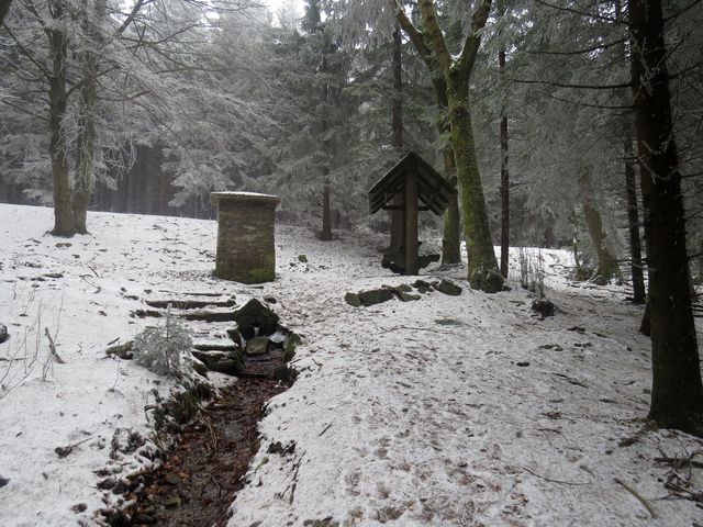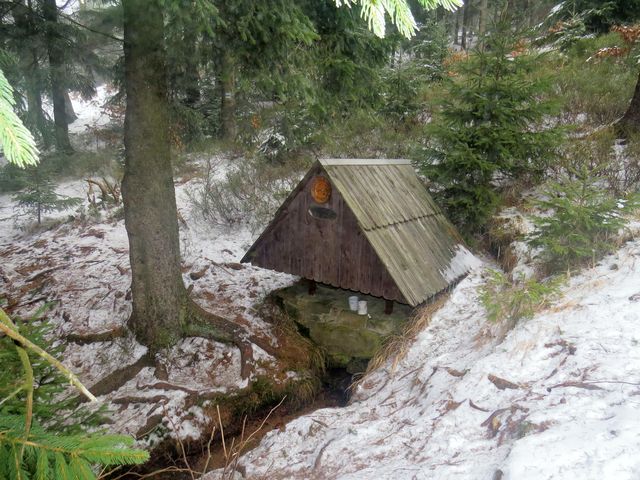Zelená značka nás vedla do Králík jinou než ranní výstupovou cestou a dala nám poznat Mariánskou studánku, u které byl v roce 1704 postaven sloup s obrazem Panny Marie Sněžné.