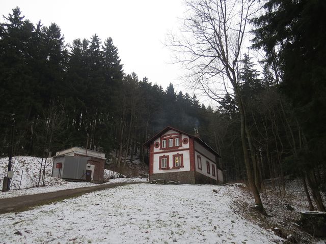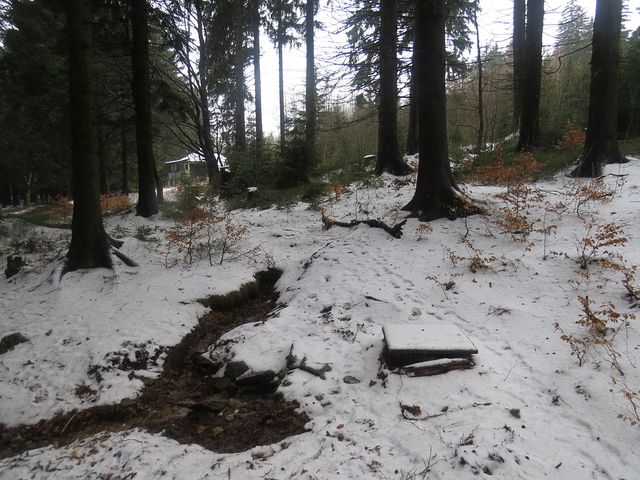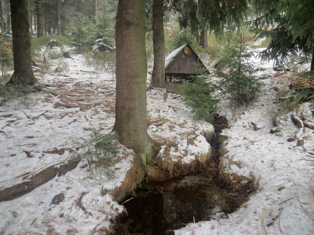 poblíž křižovatky cest je lovecká chata Wolfka, zřejmě z dřívější doby,
