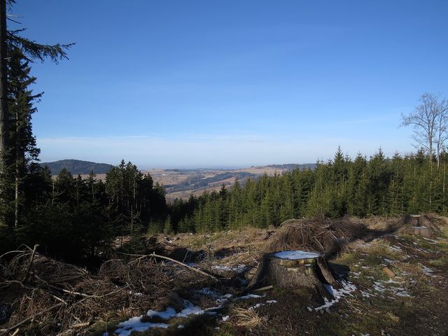 Nemohli jsme si vynachválit romantické výhledy a jarem vonící les, stoupali jsme po ČTZ na Vysoký kámen (843 m),