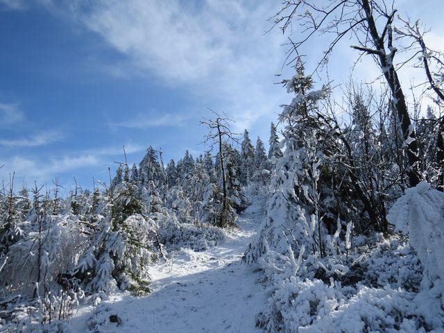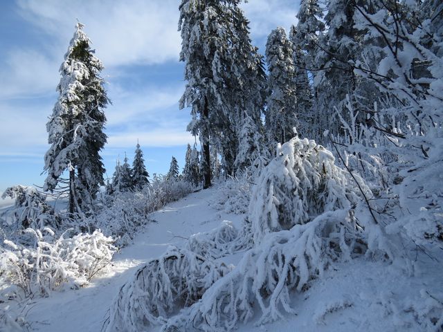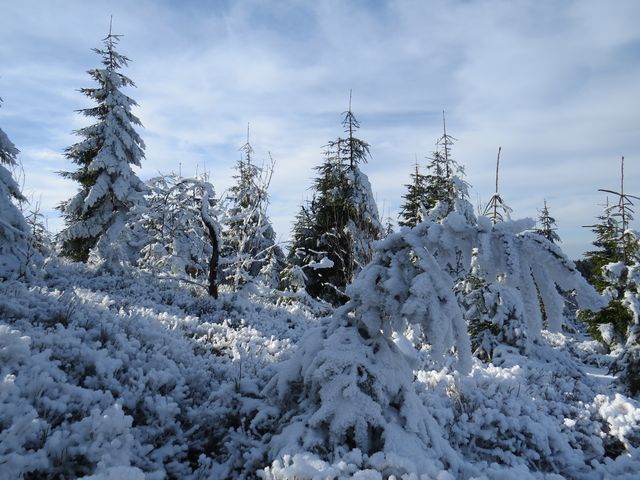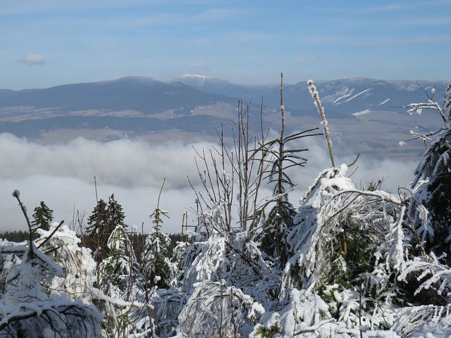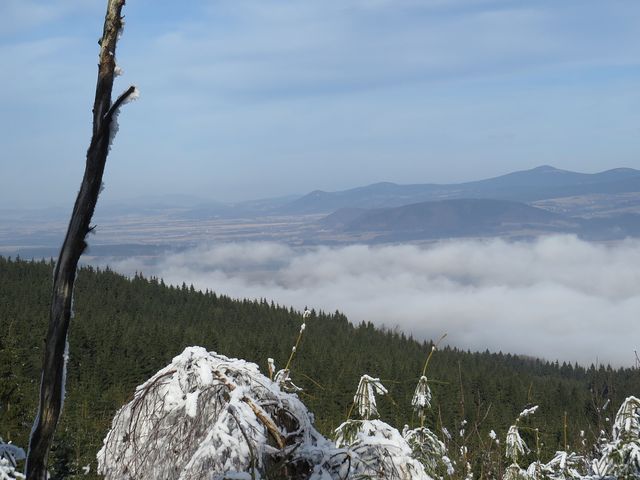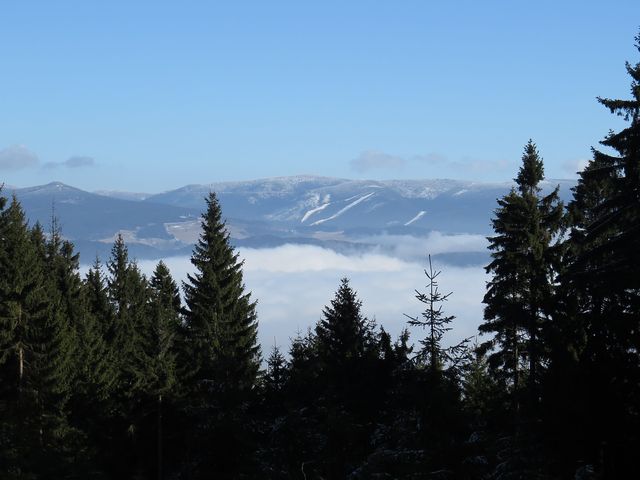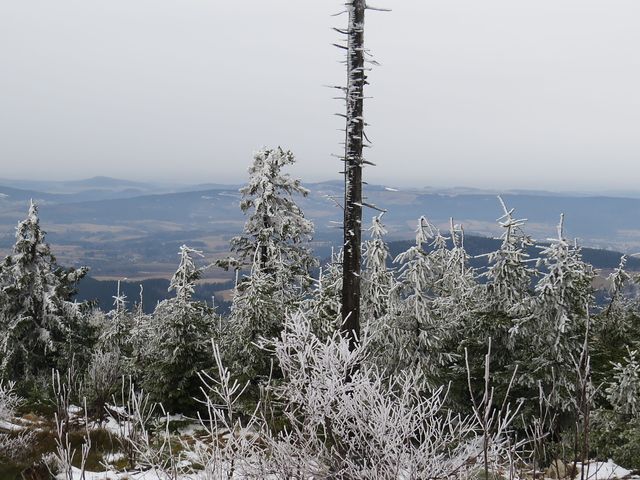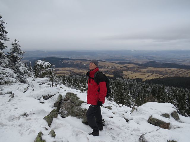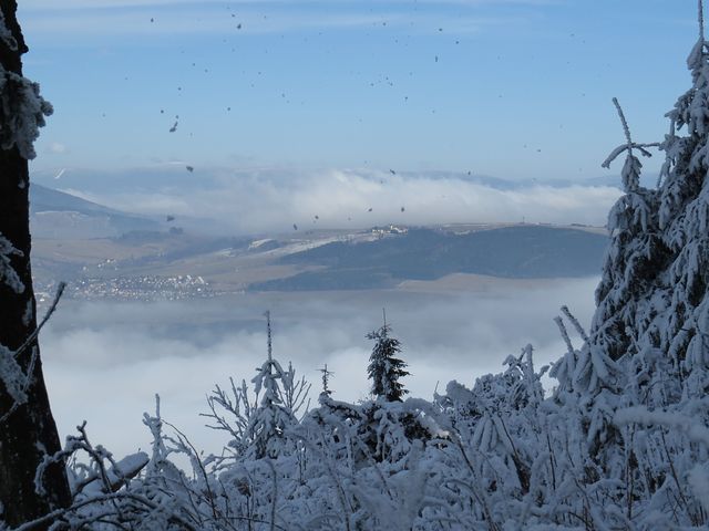 Stoupali jsme, a s výškou jako bychom vcházeli do zimní pohádky – opravdu jsme kolem poledne dostali jako mimořádnou prémii asi hodinu, kterou jsme strávili na svahu Suchého vrchu a dívali se a dívali…