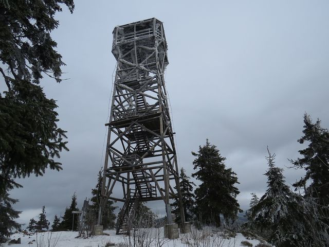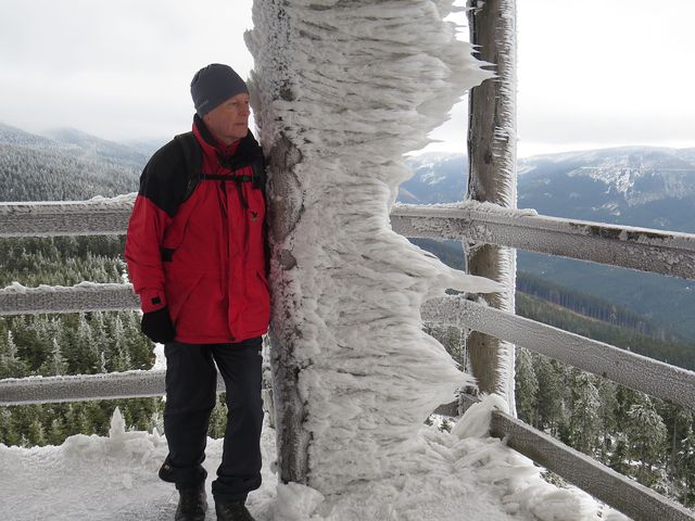 Byli jsme rozhodnutí pohostinství dřevěné dámy náležitě využít, přestože se k nám při výstupu po namrzlých schodech chvílemi chovala cize a odtažitě – na vyhlídkové plošině hýřila vstřícností.