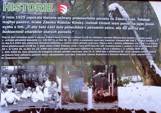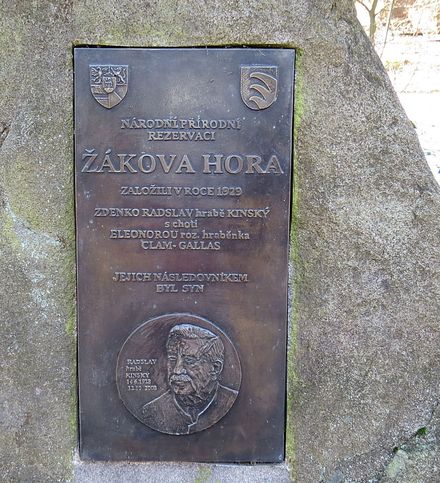 Na křižovatce značených cest pod Žákovou horou byla v roce 2009 při příležitosti 80. výročí ochrany pralesovitého porostu na Žákově hoře odhalena pamětní deska zakladatelům rezervace Zdenku Radslavu a Eleonoře Kinským a jejich pokračovateli Dr. Radoslavu Kinskému.