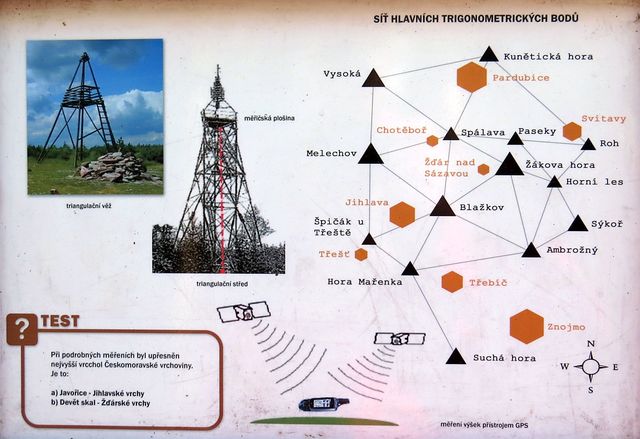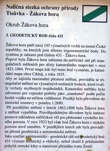 Na vrcholek Žákovy hory (810 m) je třeba vystoupat necelý kilometr – návštěvník sice není odměněn výhledem, zato se vzdělá v oblasti trigonometrických bodů. 🙂