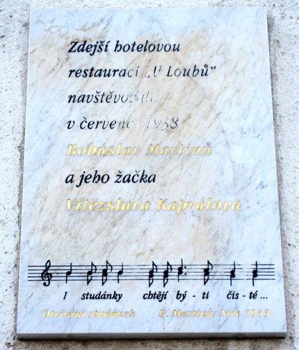Na stěně domu jsou dvě desky – jedna sděluje, že tu prožil své nejšťastnější chvíle skladatel Václav Kaprál se svou dcerou Vítězslavou, na druhé je nápis, že v červenci 1938 zde prožíval poslední dni ve vlasti Bohuslav Martinů.