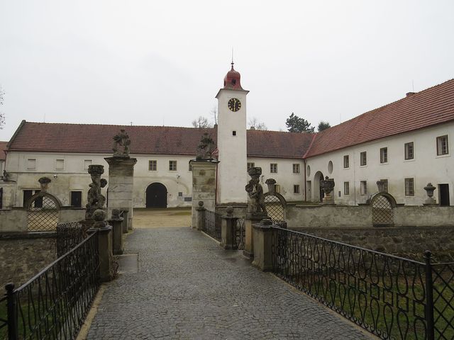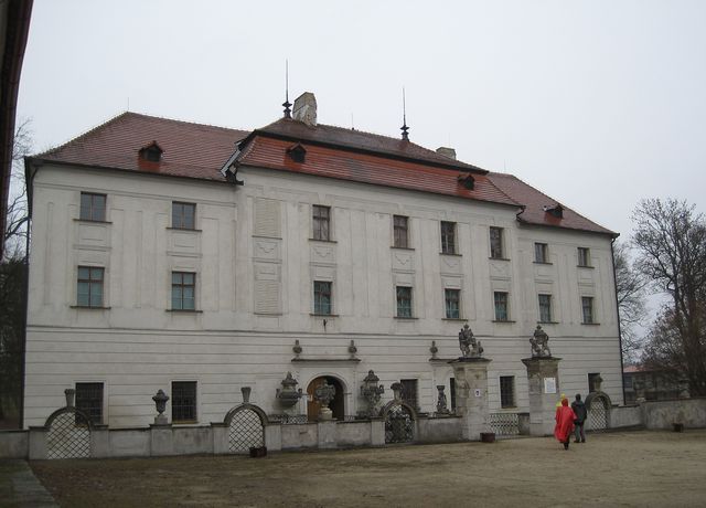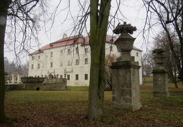 Historie zámku začala ve 13. století, kdy tu stávala vodní tvrz s obytnou věží, v renesanci bylo sídlo přestavěno na zámek, pak na začátku 18. století si hrabata z Paaru zde nechala zřídit honosné letní sídlo a rozsáhlý anglický park se sochami.
