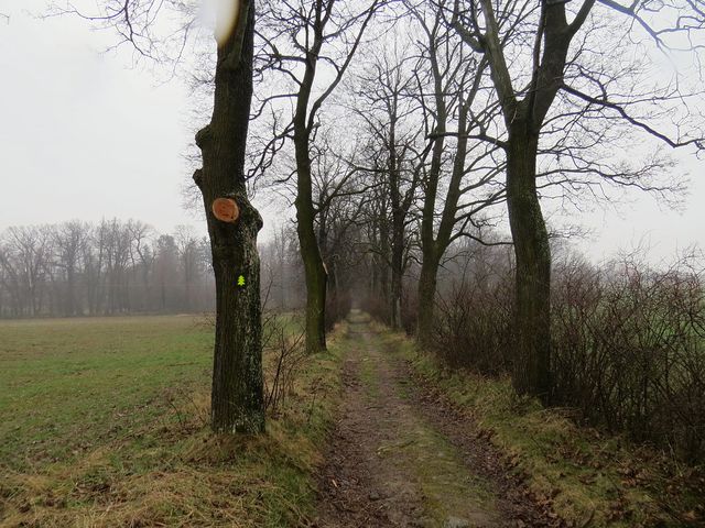 Parková cesta přechází do aleje, která nás dovedla na Zrádný kopec