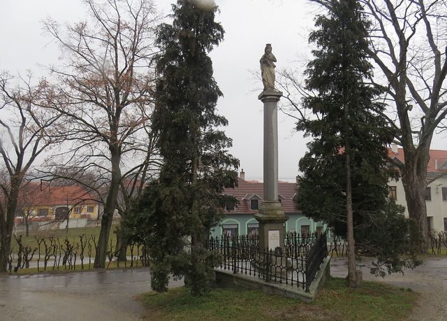 S Budišovem se rozloučíme u sochy Panny Marie, díla novopackého Čeňka Suchardy (z roku 1883):