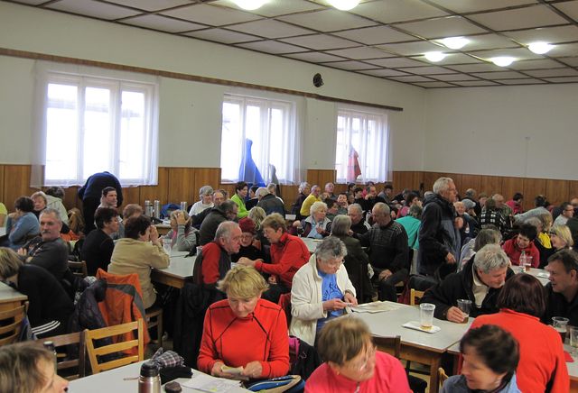 Po návratu do Trnavy jsme si v souznění s ostatními promoklými turisty pochvalovali možnost pobýt v sále kulturního domu, kde celé odpoledne vyhrávala kapela, občerstvit se a popovídat s přáteli.