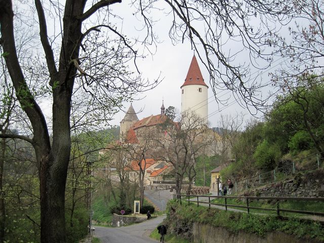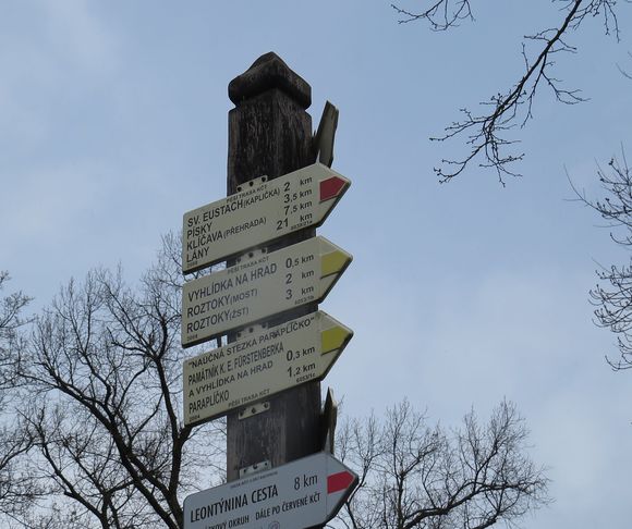 Pak už nezbývalo nežli vydat se na cestu – na směrovníku u hradu je uvedeno, že červeně značená cesta nás zavede po jednadvaceti kilometrech do Lán.