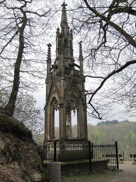 Návštěvu hradu jsme si naplánovali na neděli, dnešek patřil důkladné prohlídce okolí, což značí, že nás nejdříve přilákal nepřehlédnutelný památník ve svahu protilehlém.