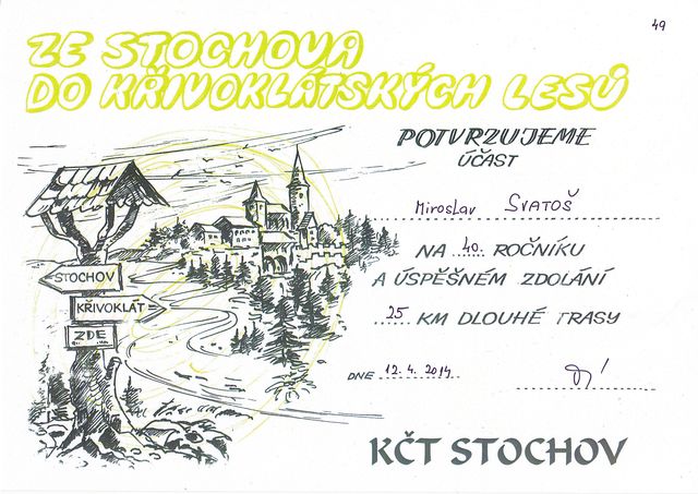 Tím byl ukončen zážitkový den, na který by nás měl upomenout diplom předaný stochovskými pořadateli – na moji paměť ale není valného spolehnutí, proto jsem okomentovala fotky, které toho dne vznikly.