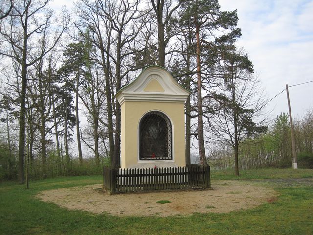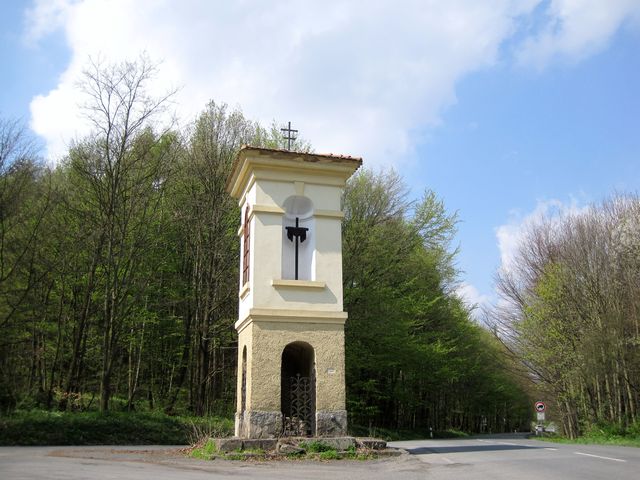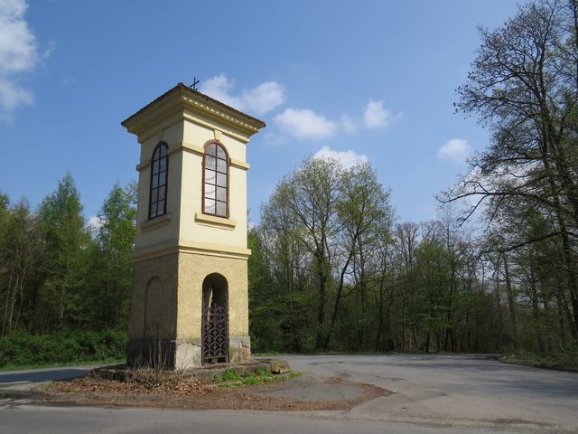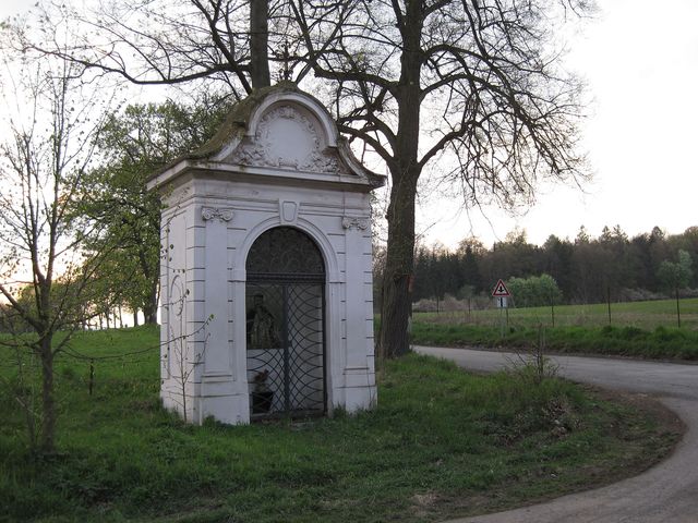 Na blízké křižovatce silnic stojí od roku 1893 neobvyklá dvoupatrová kaplička-rozcestník.