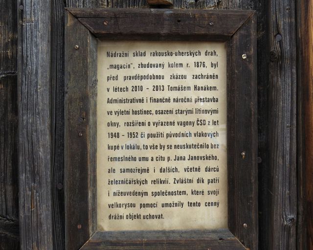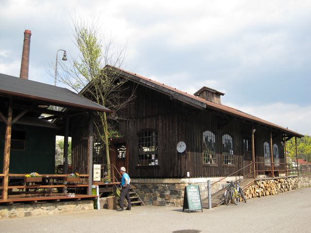 Od místní velmi komunikativní paní jsme dostali doporučení zajet se podívat na nádraží, kde je originální výletní hostinec provozovaný hercem Tomášem Hanákem.