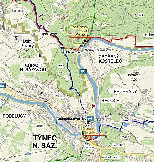V Týnci jsme jen nakoukli na hrad s rotundou vystavěný ve 12. století na kopci nad řekou Sázavou, v místech, kde už dávno před tím existovalo sídliště na obchodní stezce překračující řeku; muzeum keramiky, které v něm teď město provozuje, bylo zavřené.