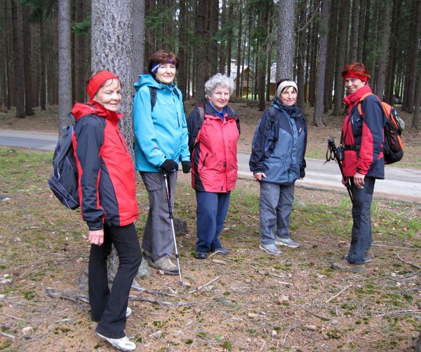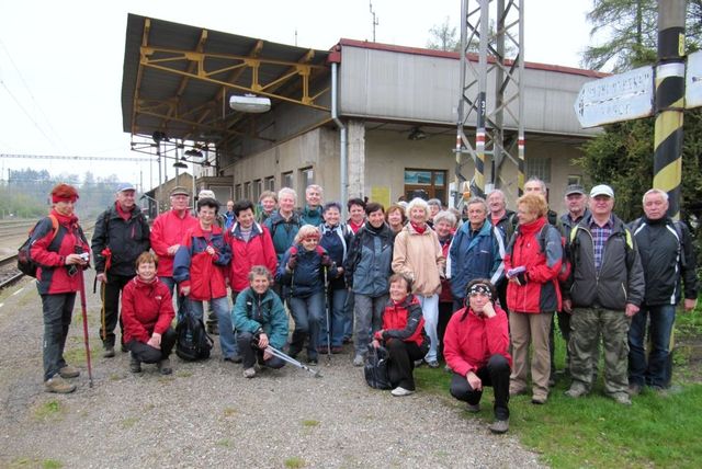 Přátelé z KČT Bedřichov vymysleli pro tento sváteční den výlet, který v začátku nesliboval žádné zvláštní události, když nepočítáme to, že všichni přítomní muži cítili svoji zodpovědnost za naše „pomlazení“, a tak se zhostili tohoto nesnadného úkolu každý podle své nátury… Po nepřehledné juchavé pětiminutovce jsme vklouzli do běžného chování a před započetím cesty postáli kvůli památečnímu fotu ve výchozím bodě, což bylo nádraží v Kostelci.