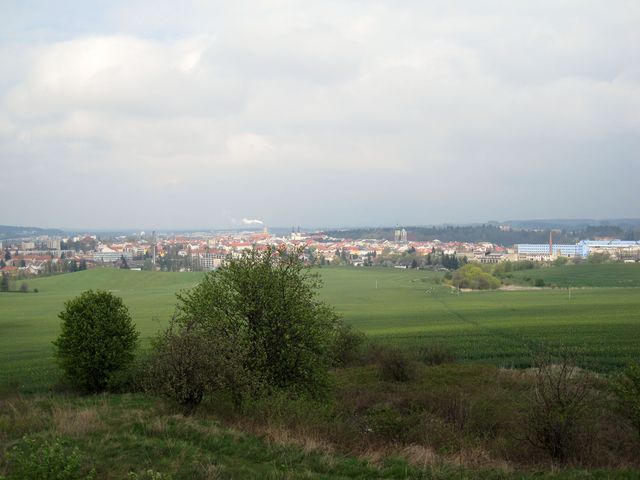 jsme se přiblížili k Jihlavě a já jsem poprvé měla dostatek času odbočit z cesty a vystoupit na nedaleký Větrník, 570 metrů vysoký zatravněný kopec, odkud je věru větrný, ale spanilý pohled na Jihlavu – to jsem brala jako sváteční, mimořádnou příležitost!