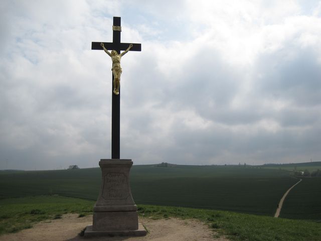 Znáte to – podej zpovykané turistce prst – chytne celou ruku! A tak jsem vlekla ostatní na další kopec, dříve zvaný Krkavčí kámen, k Merfortovu kříži obnovenému v roce 2012.