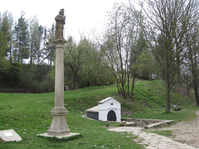 Vzpomínáte? Zašli jsme sem v létě 2011 (M+M Svatošovi – Studánka na Skalce), když toto místo nabylo po letech zmaru někdejší důstojný vzhled. Kdysi tu bývalo předměstí Matky Boží a u lomu stál od roku 1736 sloup se sochou Panny Marie.