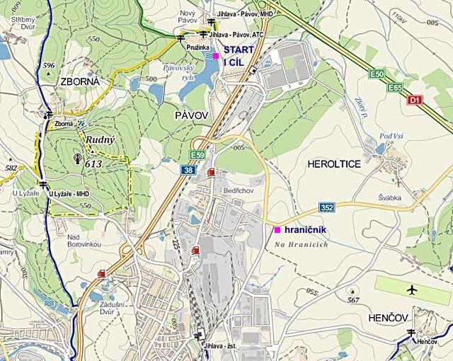 Na mapce jsem zaznamenala polohu fotografovaného barokního zemského kamene na Heroltické ulici (a taky „generální štáb“ bedřichovských turistů u Pávovského rybníka :-)):