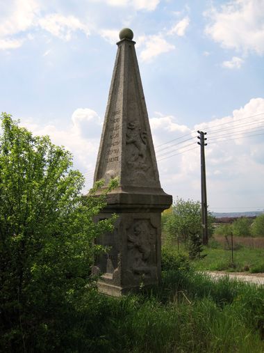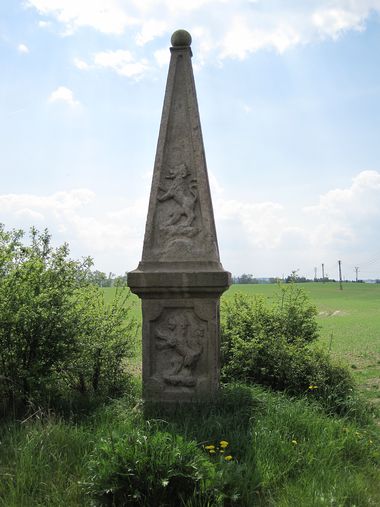 Stavbu čtyřbokých jehlanů z hrubozrnné žuly o výšce necelých pět metrů zadala sama císařovna, jejich autorem je známý polenský sochař Viktor Václav Morávek (1715–1779), který je dokončil za dva roky – byly tedy na svá místa osazeny v roce 1752.