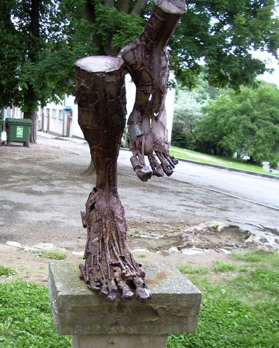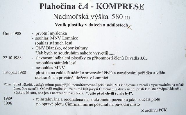 Při zkoumání plostiky vidíte na podstavci tři štítky; na prvním, tmavém, je informace, že autorem plostik je Jožka Zahradník, na druhém je poznámka č. 1 :-). Zní: