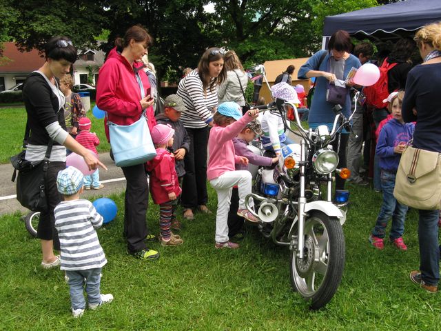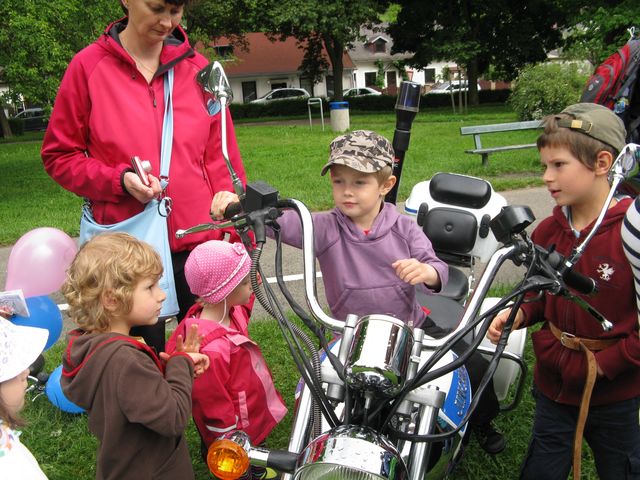kousek vedle stály nablýskané motorky městské policie a dítka se nedala od nich odtrhnout,