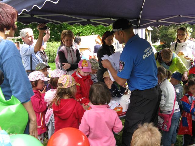 velmi rušno bylo i ve stánku, kde strážníci zkoušeli děti z dopravních předpisů a ty nadšeně vykřikovaly správné odpovědi: