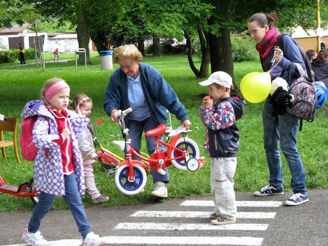 Dopoledne, při stavbě rekvizit a stanovišť pro jednotlivá pohádková zastavení, která se už podruhé otevírají před dětmi na dopravním hřišti U Rybníčků, se na podmračeném nebi postupně prosadily sluneční paprsky a slibovaly vydržet – každopádně zlepšily náladu všem zainteresovaným. Nebylo sice nijak velké teplo, ale zvědavost a dobré zkušenosti z minulých ročníků přilákaly postupně k pohádkovým hrátkám 358 dětí v doprovodu 178 dospělých – připočteme-li k tomu 16 pořadatelů z KČT Čeřínek a třídu „sedmáků“ paní učitelky Jitky Korbelové (členky KČT Čeřínek) ze ZŠ Nad Plovárnou, převlečených za pohádkové postavy, bylo na hřišti dost živo. 🙂