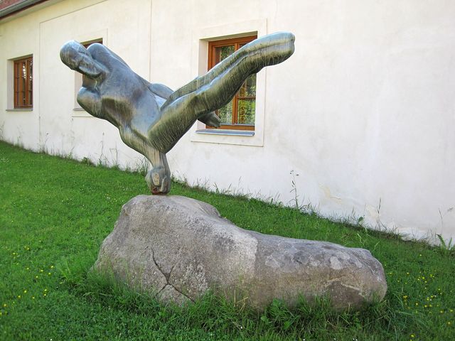 S očima plnýma sladkých barev a vodních závojů bychom málem cestou na parkoviště přehlídli tvrdě pracujícího (bronzového) atleta – inu, širokou nabídku mají v Jindřichově Hradci…